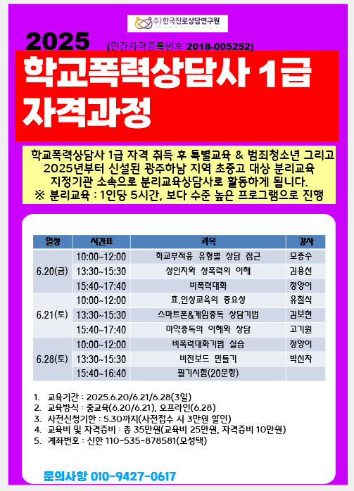 2025 학교폭력상담사1급 자격과정 신청